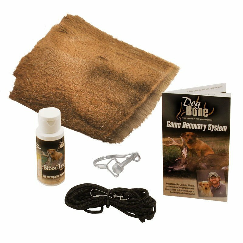 The Dog Bone Game Recovery System Dog Training Kit gives you everything you need to successfully train virtually any dog of any age to track and find wounded game. Should you ever not be able to locate an animal you've shot, your dog will be able to trail it and help you recover it before it spoils or the coyotes get to it first!