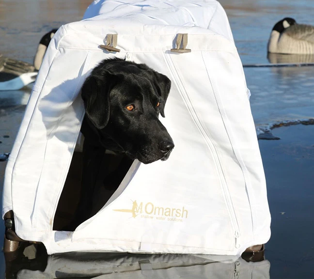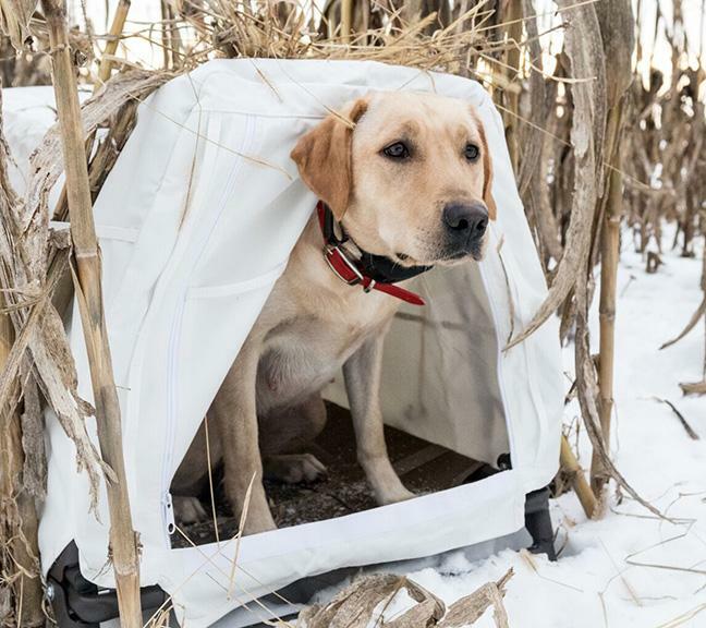 You asked for it, so we built it. Specifically designed for the Invisi-Lab and Field House dog blinds. This cover replaces the existing camo cover instead of sliding over it making the process much more simple, while allowing for a proper fit. The snow cover is made of non UV brightening material and is equipped with vegetation straps for stubbling your blind.